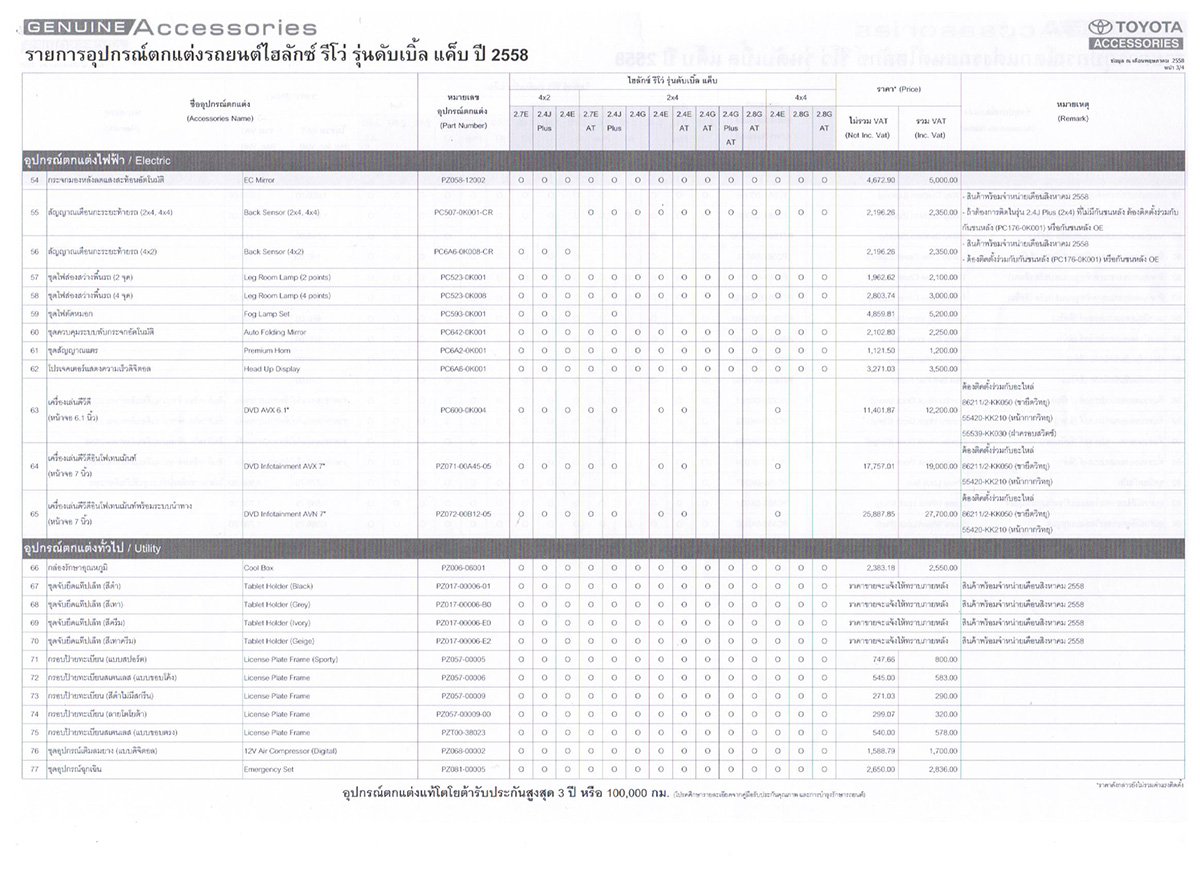 *อุปกรณ์ตกแต่งแท้โตโยต้ารับประกันสูงสุด 3 ปี หรือ 100,000 กม.