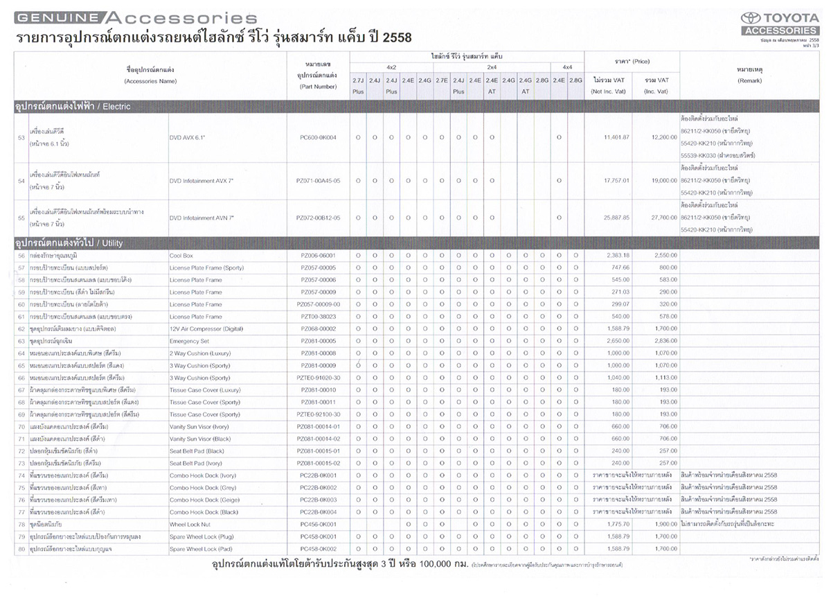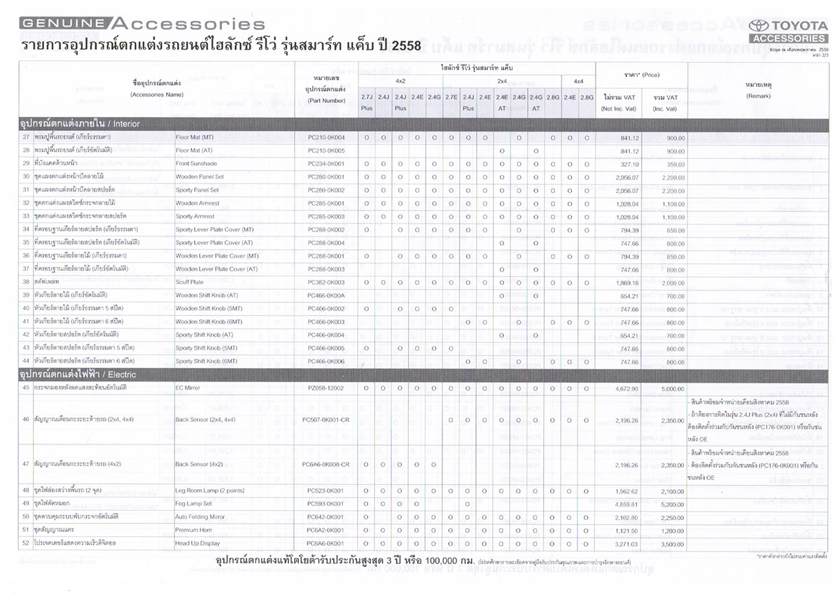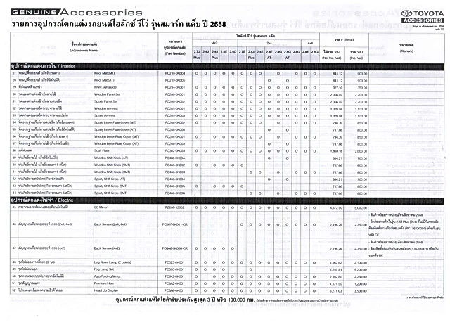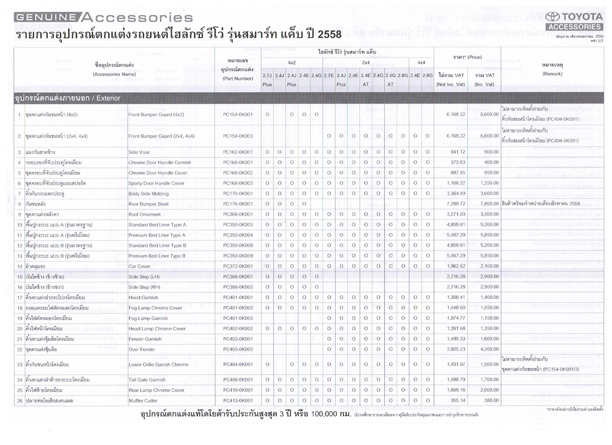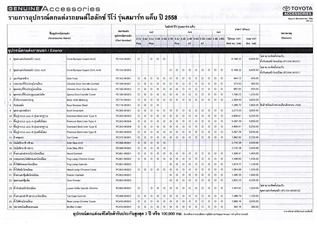 ราคาอุปกรณ์ตกแต่งไฮลักซ์ รีโว่ รุ่นมาตรฐาน สามารถดูอ้างอิงได้จากรุ่น สมาร์ท และดับเบิ้ล แค็บ
