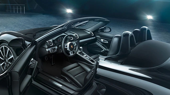 ส่วนรุ่น บ็อกซเตอร์ แบล็ค อิดิชั่น (Boxster Black Edition) ติดตั้งเครื่องยนต์ขนาด 2.7 ลิตร สูบนอน วางกลางลำ กำลังสูงสุด 265 แรงม้า (195 กิโลวัตต์) หลังคาผ้าใบและบาร์ป้องกัน (Rollover Protection Bar) เน้นสีดำ ระบบ Wind Deflector ช่วยกันลมขณะเปิดหลังคาได้ดี ด้านล้อแม็กใช้ขนาด 20 นิ้ว ลาย Carrera Classic พร้อมระบบไฟหน้าไบซีนอลและ Porsche Dynamic Light System (PDLS) เพิ่มความโดดเด่นให้กับรถ ภายในห้องโดยสารสะดวกสบายด้วยระบบปรับอุณหภูมิแยกแบบ Two-zone Air Conditioning และระบบเครื่องเสียงแบบ Sound Package Plus คุณภาพสูง