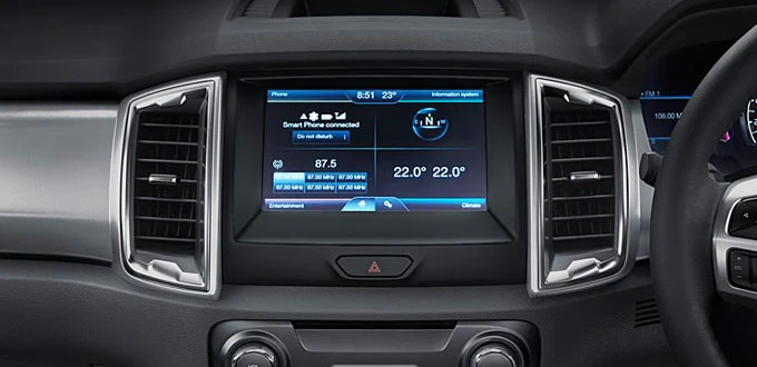 นอกจากนี้ ระบบ ซิงค์ 2 ยังมาพร้อมจอทัชสกรีนขนาด 8 นิ้ว ที่ใช้งานง่ายด้วยเมนูควบคุมที่แบ่งจอออกเป็น 4 มุม และใช้สีที่แตกต่างกันบ่งบอกถึงฟังก์ชั่นการใช้งานหลักๆ ได้อย่างชัดเจน และมาพร้อมลำโพงคุณภาพสูงถึง 10 ตัว รวมซับวูฟเฟอร์ ที่มอบเสียงที่ชัดเจนพร้อมเสียงเบสทุ้มลึกและหนักแน่น เพื่อความสนุกสนานอย่างเต็มที่ตลอดการเดินทาง