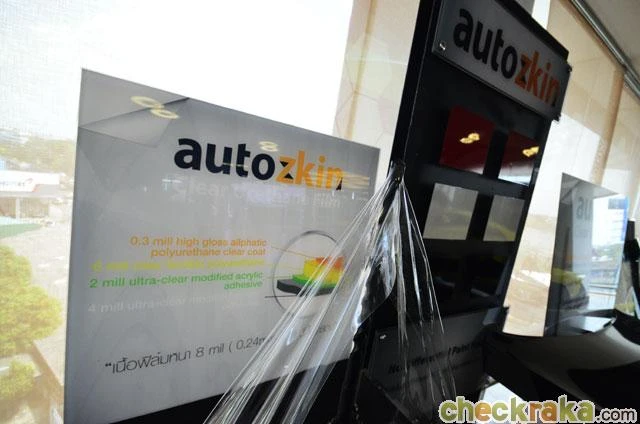 ฟิล์มปกป้องสีรถยนต์ ออโต้ซคิน รุ่นใหม่ที่ร่วมกันพัฒนากับบริษัทญี่ปุ่น จะใช้ชื่อรุ่นย่อยว่า Autozkin ACT นับเป็นเทคโนโลยีที่เหนือระดับกว่ารุ่นเดิมอีกขั้น ด้วยระบบ Coating ที่ลดการซีดหรือเหลืองของเนื้อฟิล์ม สามารถคืนรูปเดิมได้เมื่อถูกกระทบ และคุณสมบัติสำคัญคือ มีพื้นผิวที่ลื่น ส่งผลให้น้ำไม่สามารถเกาะติดได้ จึงไหลลงสู่ด้านล่าง สะดวกในการทำความสะอาด เพียงเช็คคราบก็ออกได้หมดจด จึงไม่จำเป็นต้องนำรถยนต์คันโปรดไปเคลือบสีหรือเคลือบแก้วคุณภาพสูงที่มีราคา 3 - 4 หมื่นบาทต่อครั้งและยังต้องเคลือบบ่อยๆ อย่างน้อย 2 ครั้งต่อปี ซึ่งนับว่าเสียค่าใช้จ่ายมากเมื่อใช้ระยะเวลาไปนานๆ แต่สำหรับ ออโต้ซคิน ติดตั้งเพียงครั้งเดียว ในราคาประมาณ 120,000 บาทต่อคัน สามารถปกป้องสีของรถคุณได้ถึง 5 ปีขึ้นไป และสามารถลอกออกได้อย่างง่ายโดยไม่ทำลายผิวสีรถอีกด้วย ดังนั้นสีรถจะดูเหมือนเพิ่งออกจากโชว์รูมใหม่ๆ ทันทีที่ลอกออก นับเป็นนวัตกรรมที่คุ้มค่าต่อรถยนต์ที่คุณทะนุถนอม