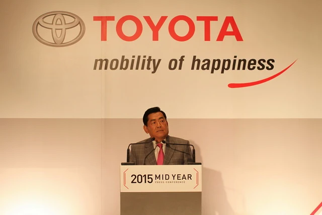 บริษัท โตโยต้า มอเตอร์ ประเทศไทย จำกัด แถลงข่าว "สรุปยอดขายครึ่งปีแรกและแนวโน้มตลาดรถยนต์ไทยในครึ่งปีหลัง" พร้อมรายงานสถิติการจำหน่ายรถยนต์ของโตโยต้า โดยมี มร.เคียวอิจิ ทานาดะ เจ้าหน้าที่บริหาร บริษัท โตโยต้า มอเตอร์ คอร์ปอเรชั่น กรรมการผู้จัดการใหญ่ บริษัท โตโยต้า มอเตอร์ เอเชีย แปซิฟิค มาร์เก็ตติ้ง แอนด์เซลส์ กรรมการผู้จัดการใหญ่ บริษัท โตโยต้า มอเตอร์ เอเชีย แปซิฟิค เอ็นจิเนียริ่ง แอนด์ แมนูแฟคเจอริ่ง และกรรมการผู้จัดการใหญ่ บริษัท โตโยต้า มอเตอร์ ประเทศไทย จำกัด แถลงว่า สถิติการจำหน่ายรถยนต์ครึ่งแรกของปี 2558 มีปริมาณการขาย 369,109 คัน ลดลง 16.3% พร้อมปรับประมาณการตลาดรถยนต์ไทยปี 2558 อยู่ในระดับไม่เกิน 800,000 คัน เมื่อ 28 กรกฎาคม 2558 ณ ห้องบอลรูม โรงแรมโอกุระ กรุงเทพฯ
