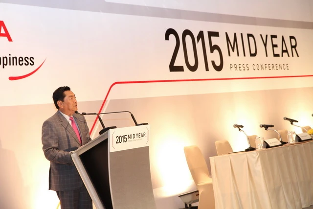 บริษัท โตโยต้า มอเตอร์ ประเทศไทย จำกัด แถลงข่าว "สรุปยอดขายครึ่งปีแรกและแนวโน้มตลาดรถยนต์ไทยในครึ่งปีหลัง" พร้อมรายงานสถิติการจำหน่ายรถยนต์ของโตโยต้า โดยมี มร.เคียวอิจิ ทานาดะ เจ้าหน้าที่บริหาร บริษัท โตโยต้า มอเตอร์ คอร์ปอเรชั่น กรรมการผู้จัดการใหญ่ บริษัท โตโยต้า มอเตอร์ เอเชีย แปซิฟิค มาร์เก็ตติ้ง แอนด์เซลส์ กรรมการผู้จัดการใหญ่ บริษัท โตโยต้า มอเตอร์ เอเชีย แปซิฟิค เอ็นจิเนียริ่ง แอนด์ แมนูแฟคเจอริ่ง และกรรมการผู้จัดการใหญ่ บริษัท โตโยต้า มอเตอร์ ประเทศไทย จำกัด แถลงว่า สถิติการจำหน่ายรถยนต์ครึ่งแรกของปี 2558 มีปริมาณการขาย 369,109 คัน ลดลง 16.3% พร้อมปรับประมาณการตลาดรถยนต์ไทยปี 2558 อยู่ในระดับไม่เกิน 800,000 คัน เมื่อ 28 กรกฎาคม 2558 ณ ห้องบอลรูม โรงแรมโอกุระ กรุงเทพฯ