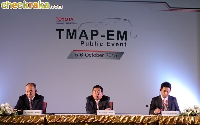 มร.เคียวอิจิ ทานาดะ เจ้าหน้าที่บริหาร บริษัท โตโยต้า มอเตอร์ คอร์ปอเรชั่น / กรรมการผู้จัดการใหญ่ บริษัท โตโยต้า มอเตอร์ เอเชีย แปซิฟิค มาร์เก็ตติ้ง แอนด์เซลส์ / กรรมการผู้จัดการใหญ่ บริษัท โตโยต้า มอเตอร์ เอเชีย แปซิฟิค เอ็นจิเนียริ่ง แอนด์ แมนูแฟคเจอริ่ง / กรรมการผู้จัดการใหญ่ บริษัท โตโยต้า มอเตอร์ ประเทศไทย จำกัด พร้อมด้วย มร. โซอิชิโระ โอคุไดระ เจ้าหน้าที่บริหารอาวุโส บริษัท โตโยต้า มอเตอร์ คอร์ปอเรชั่น / ประธานบริหารด้านเทคนิค ประจำภูมิภาคเอเชีย โอเชียเนีย และจีน และนายสุรพงษ์ ตินนังวัฒนะ รองกรรมการผู้จัดการใหญ่ บริษัท โตโยต้า มอเตอร์ เอเชีย แปซิฟิค เอ็นจิเนียริ่ง แอนด์ แมนูแฟคเจอริ่ง ร่วมเปิดงานเยี่ยมชม บริษัท โตโยต้า มอเตอร์ เอเชีย แปซิฟิค เอ็นจิเนียริ่ง แอนด์ แมนูแฟคเจอริ่ง เป็นครั้งแรกแก่สื่อมวลชน เมื่อวันที่ 5 ตุลาคม 2558 ณ สำนักงานใหญ่ อำเภอบางบ่อ จังหวัดสมุทรปราการ