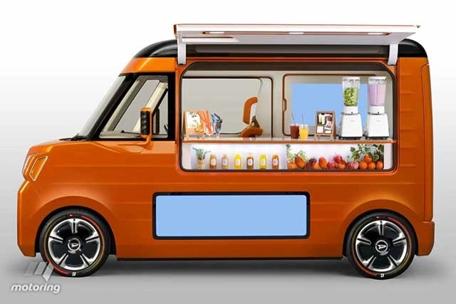 ด้วยบานหน้าต่างด้านข้างที่เปิดขึ้นเพื่อโชว์สินค้าหรืออาหารภายในรถ พร้อมเคาน์เตอร์บาร์และช่องสำหรับติดป้ายร้านค้าครบวงจรในคันเดียว