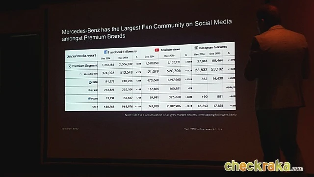 นอกจากนี้ทางเมอร์เซเดส-เบนซ์จะเน้นการทำกิจกรรมการตลาดบนสังคมออนไลน์ไม่ว่าจะเป็นเฟสบุ๊คที่ตอนนี้มีผู้ติดตามแล้วกว่า 513,613 คน และอินสตราแกรม ด้วยจำนวนผู้ติดตามกว่า 53,400 คน เพื่อเจาะกลุ่มเป้าหมายที่เป็นกลุ่มคนรุ่นใหม่ ทั้งนี้ในส่วนกิจกรรมซีอาร์เอ็ม เรายังคงมอบกิจกรรมสุดพิเศษให้กับลูกค้า และสมาชิก MercedesCard ภายใต้คอนเซปต์ "Best Customer Experience" เพื่อมอบเป็นประสบการณ์ที่ดีที่สุด ครอบคลุมในทุกความต้องการของลูกค้า เช่น กิจกรรมเวิร์คช็อปร่วมกับแบรนด์แอมบาสซาเดอร์ ชมพู่ - อารยา เอ. ฮาร์เก็ต และกิจกรรมภายใต้แคมเปญฟุตบอลยูโร 2016 รวมถึงการแข่งขัน MercedesTrophy ที่จัดต่อเนื่องมากว่า 17 ปีแล้ว เป็นต้น