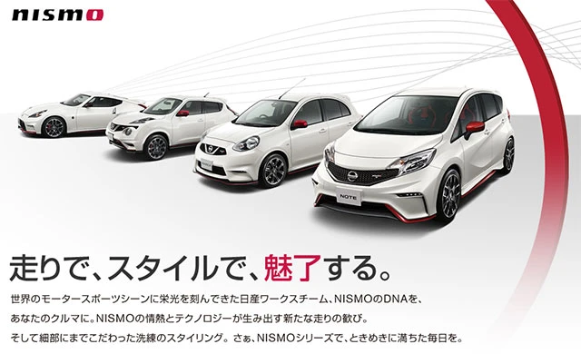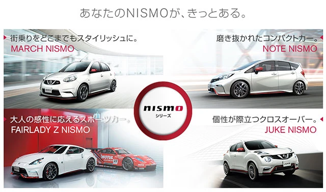 NISMO มาจาก Nissan Motorsports ก่อตั้งขึ้นในปี พ.ศ. 2527 ซึ่งตลอดระยะเวลา 32 ปีที่ผ่านมา นิสสันได้ใช้ "นิสโม" ในการทำกิจกรรมมอเตอร์สปอร์ตจนเป็นที่รู้จักอย่างกว้างขวาง และประสบความสำเร็จ จะเห็นได้จากการจัดงานเทศกาลนิสโม ประจำปีที่มีแฟนๆ กว่า 30,000 คน มาร่วมเฉลิมฉลอง ขณะที่ในด้าน Road cars รถยนต์นิสสันหลากรุ่นที่ได้รับการปรับแต่งสมรรถนะเต็มรูปแบบโดยนิสโม ภายใต้แบรนด์นิสโม ได้มีการทำตลาดทั้งใน ญี่ปุ่น สหรัฐอเมริกา ยุโรป รัสเซีย โดยประสบความสำเร็จอย่างสูงและต่อเนื่อง