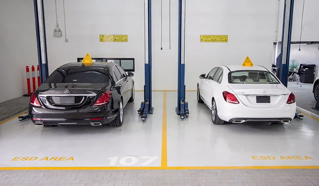 ศูนย์บริการมีพื้นที่ใช้สอยกว่า 12,000 ตร.ม. รองรับรถยนต์ที่เข้ามาใช้บริการได้มากกว่า 100 คัน/วัน มีช่องซ่อมบำรุงกว่า 45 ช่อง พร้อมบริการครบวงจร รองรับการซ่อมรถเมอร์เซเดส-เบนซ์ รุ่นใหม่ๆ ที่มีตัวถังอะลูมิเนียม และเทคโนโลยี Plug-in Hybrid ทั้งการซ่อมแบบ Quick Service ซ่อมทั่วไป และซ่อมตัวถังและสี โดยเบนซ์สตาร์แฟลกมีศูนย์ซ่อมตัวถังและสี (Body and Paint) พร้อมทีมที่ได้รับการอบรมจากผู้เชี่ยวชาญของเมอร์เซเดส-เบนซ์ พร้อมห้องอบสีระบบไฟฟ้าอินฟาเรดช่วยทำให้สีแห้งเร็วขึ้น ซึ่งเป็นเทคโนโลยีที่ทันสมัยที่สุดในขณะนี้ และเครื่องดึงตัวถัง และตัดต่อตัวถังสำหรับงานซ่อมหนักเป็นตัวแรกของประเทศไทย"