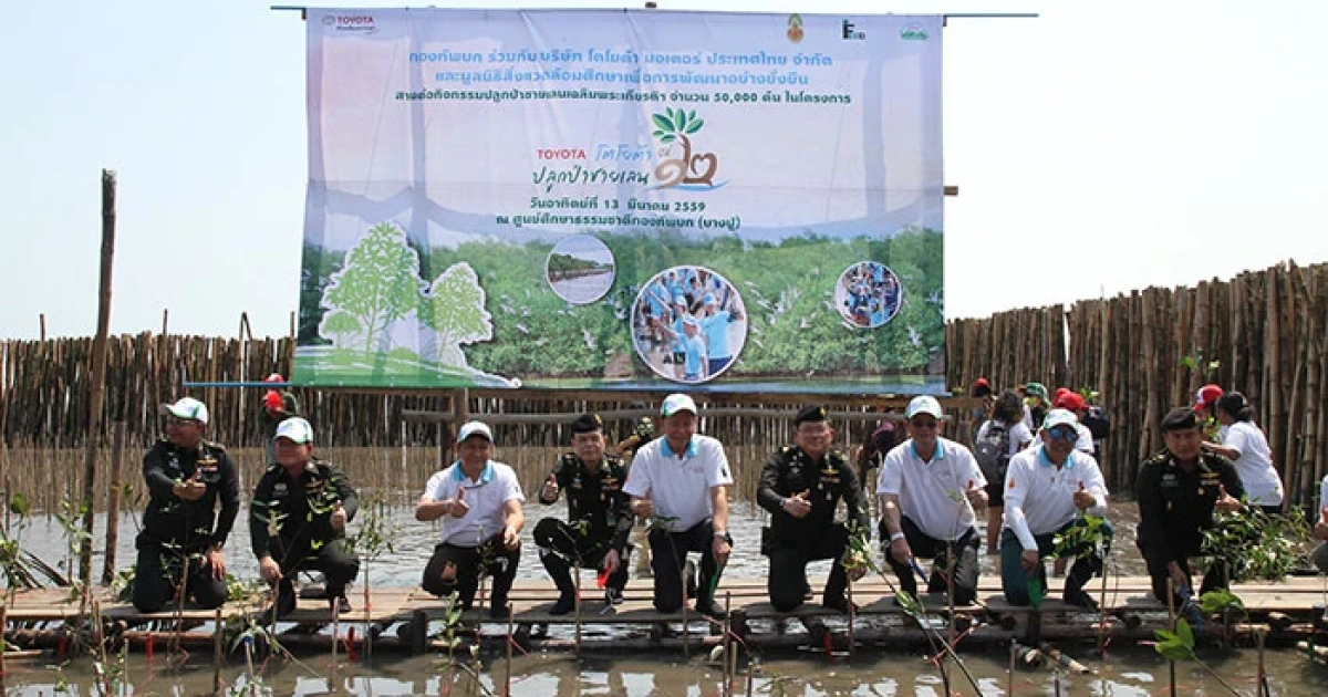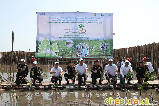 นายนินนาท ไชยธีรภิญโญ รองประธานกรรมการ พร้อมด้วยคณะผู้บริหาร บริษัท โตโยต้า มอเตอร์ ประเทศไทย จำกัด พลโท พลรบ โชคระดา เจ้ากรมพลาธิการทหารบก และ นายตรีรัช ภูคชสารศิลป์ ผู้อำนวยการมูลนิธิสิ่งแวดล้อมศึกษาเพื่อการพัฒนาอย่างยั่งยืน (ประเทศไทย) หรือ FEED นำคณะอาสาสมัครอันประกอบด้วยตัวแทนจากบริษัทในเครือ กลุ่มพนักงานโตโยต้าและครอบครัว สมาชิกชมรมโตโยต้าจิตอาสา สมาชิกเครือข่าย ToyotaCSR Facebook สมาชิกโตโยต้าคาร์คลับ และประชาชนทั่วไป จำนวนกว่า 4,000 คน ร่วมกิจกรรม "โตโยต้าปลูกป่าชายเลนปีที่ 12" ทำการปลูกพันธุ์ไม้ชายเลนจำนวน 50,000 ต้น เมื่อวันอาทิตย์ที่ 13 มีนาคม 2559 ณ ศูนย์ศึกษาธรรมชาติกองทัพบก (บางปู) จังหวัดสมุทรปราการ