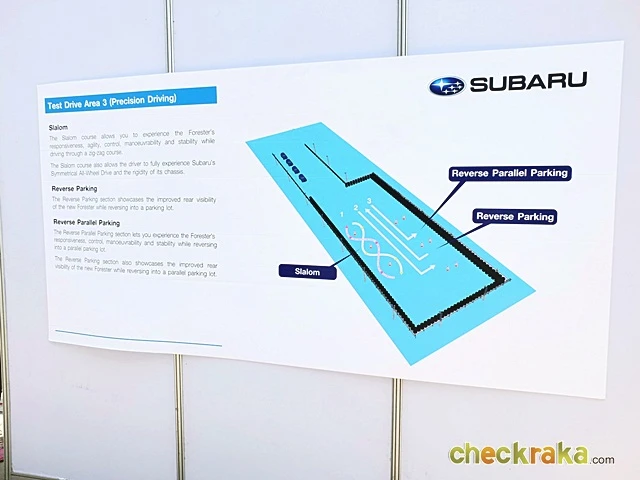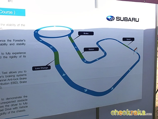 สำหรับรุ่นที่ให้สื่มมวลชนได้ร่วมทดสอบนั้นเป็น New SUBARU Forester 2.0i-P โดยการสลับกันขับพร้อมอินสตักเตอร์ที่นั่งไปด้วยและให้คำแนะนำตลอดการทดสอบทุกรูปแบบ