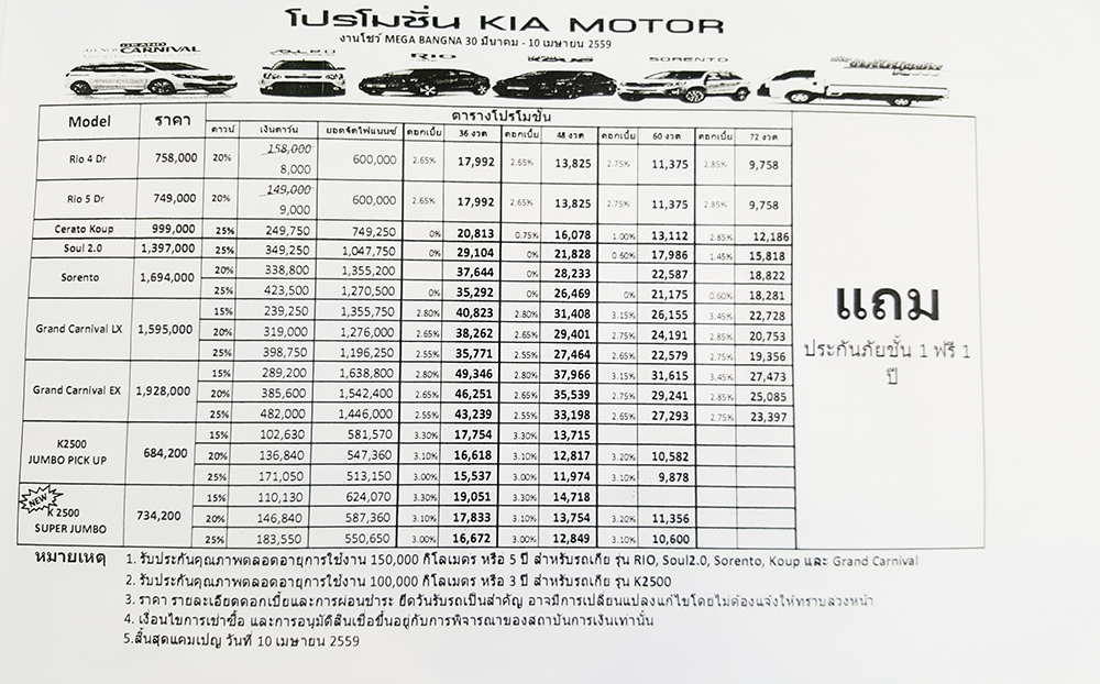 ตารางราคาและค่างวด KIA เฉพาะในงานนี้เท่านั้น...!