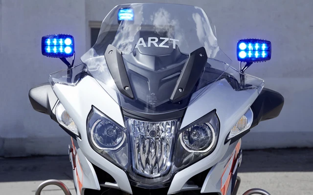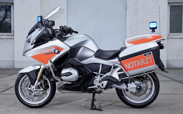 BMW R 1200 RT รถมอเตอร์ไซค์กู้ภัยสุดเท่ คล่องตัว ว่องไว และมีครบทุกความต้องการด้านการแพทย์ฉุกเฉิน อย่างกระเป๋าด้านข้างขนาดใหญ่ 56 ลิตร สามารถใส่อุปกรณ์ทางการแพทย์ได้เพียงพอ, ไฟหน้าและไฟท้ายสีฟ้า ส่วนพลังเครื่องยนต์ มีอัตราเร่ง 0-100 กิโลเมตร/ชม. ภายใน 3.8 วินาที