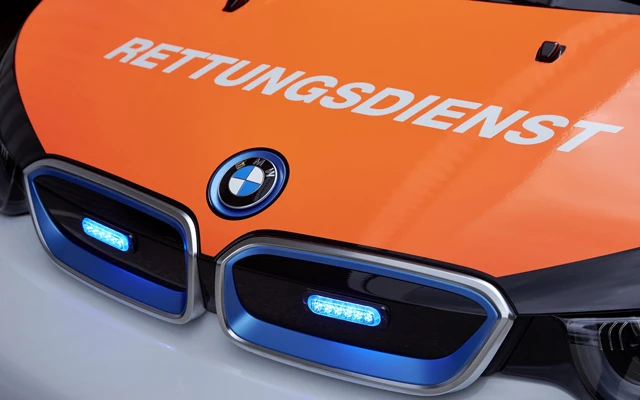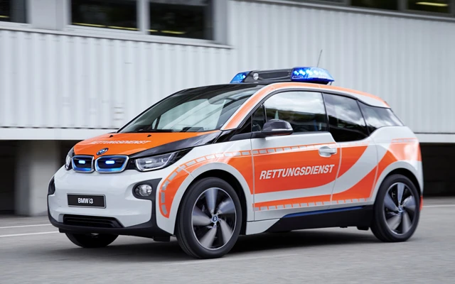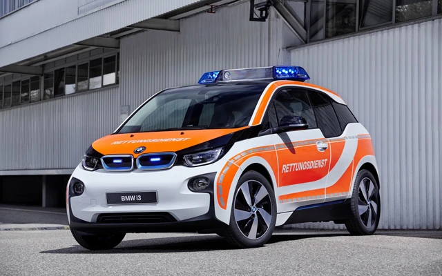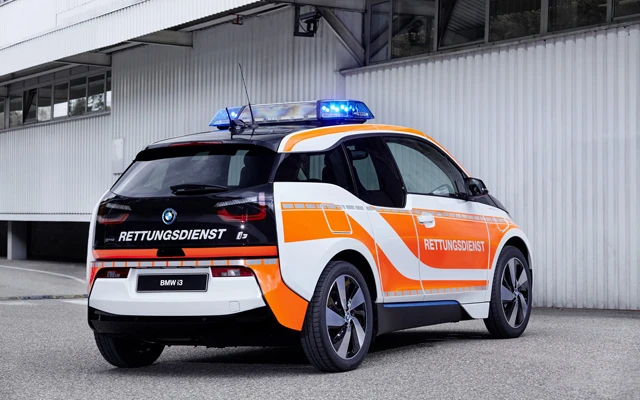 BMW i3 รถยนต์ไฟฟ้าสำหรับงานกู้ภัยที่ถูกออกแบบพิเศษ ดีไซน์ธีมสีส้ม-แดง และมีสกรีนด้านข้างแปลได้ว่า "Emergency Service" จุดเด่นอยู่ที่ไฟหน้าและหลังสีฟ้า, วิทยุสื่อสารดิจิตอล, ไฟ LED และระบบไฟ Hella RTK 7 บนหลังคารถ, ไฟกะพริบ รุ่น KL-LM2 LED นับเป็นรถยนต์ไฟฟ้าที่ไม่ก่อให้เกิดมลภาวะทางอากาศ และสามารถชาร์จไฟได้เร็ว ขับเคลื่อนด้วยมอเตอร์ไฟฟ้า มีอัตราเร่ง 0-100 กิโลเมตร/ชม. ภายใน 7.9 วินาที
