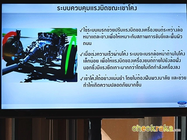 ฟอร์ด โฟกัส ใหม่ มีระบบช่วยการทรงตัวต่างๆ มากมายสามารถควบคุมทั้งในโค้งยาว-สั้น สลาลอมด้วยการหักพวงมาลัยไป-มาอย่างรุนแรงคล้ายๆ การสบัด จนรถมีอาการอันเดอร์และโอเวอร์สเตียร แต่ระบบความปลอดภัยในโฟกัสใหม่ สามารถแก้อากรเหล่านี้ได้เพียงเสี้ยววินาที จนสามารถควบคุมรถให้ขับได้อย่างปลอดภัยโดยแทบไม่ต้องใช้ทักษะใดๆ มาช่วย เรียกว่าปลอดภัยแม้คนขับจะเป็นมือใหม่