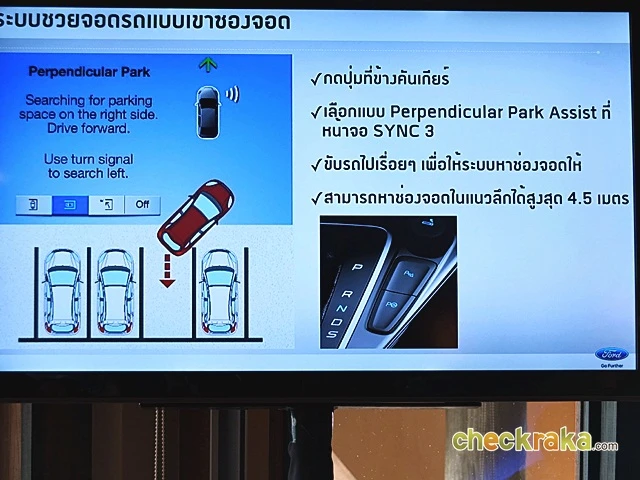 เมื่อระบบพร้อมทำงานก็จะเริ่มสแกนหาที่ว่างและจะปรากฏคำสั่งบนจอ เช่น เมื่อขับผ่านช่องจอดจะมีภาพแสดงเครื่องหมายถูก และข้อความต่างๆ ด้วยการคำนวนระยะห่างรอบๆ ตัวรถจากระบบเซ็นเซอร์ 12 จุด มากกว่ารุ่นเดิมที่มีเพียง 8 จุด ส่วนคนขับมีหน้าที่เพียงเข้าเกียร์ ควบคุมคันเร่งและเบรกไม่ให้ชนแค่เท่านี้ ที่เหลือฟอร์ด โฟกัสหมุนพวงมาลัยให้เอง เจ๋งม่ะ!