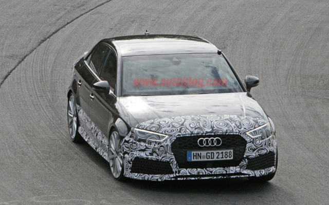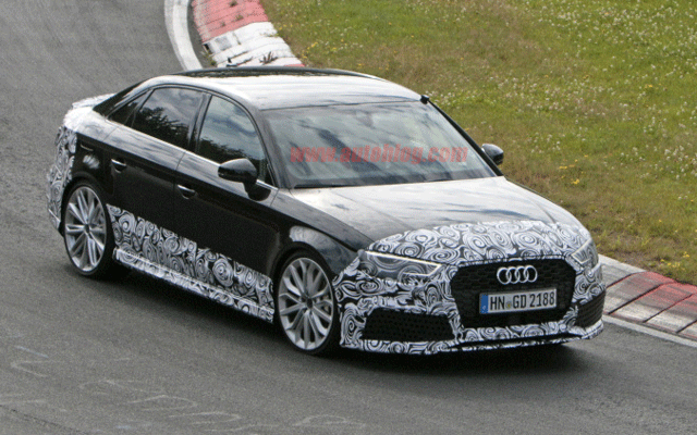 เป็นที่ทราบกันมาได้สักพักแล้วว่า อาจจะมีการขาย Audi RS3 สำหรับตลาดอเมริกาในปี 2017 ในขณะที่มีการขาย Audi RS3 Sportback ในตลาดยุโรปไปเป็นที่เรียบร้อยแล้ว แต่อาจจะขายเฉพาะแค่รุ่นซีดานเท่านั้น ล่าสุดก็มีภาพสปายช็อตหลุดออกมา โดยคาดว่าเป็น R3 ซีดานที่กำลังทดสอบในสนามแข่งรถเนือร์บูร์กริง (Nurburgring) ประเทศเยอรมนี แม้มีการพรางตัวถังของรถ แต่โดยรวมยังคงเอกลักษณ์ของตระกูล RS ไว้ เช่น ล้ออัลลอยด์ขนาดใหญ่, เบรก, สปอยเลอร์, กระจังข้างหน้าทรงหกเหลี่ยม สิ่งที่ต่างไป เช่น ฝากระโปรงรถ, ท่อไอเสียขนาดใหญ่ออก 2 ทางคล้ายกับในรุ่น RS3 Sportback ดูใหญ่ไปหน่อยเมื่อเทียบกับของ S3 และ S4 ที่มีท่อแบบ quad exhaust
