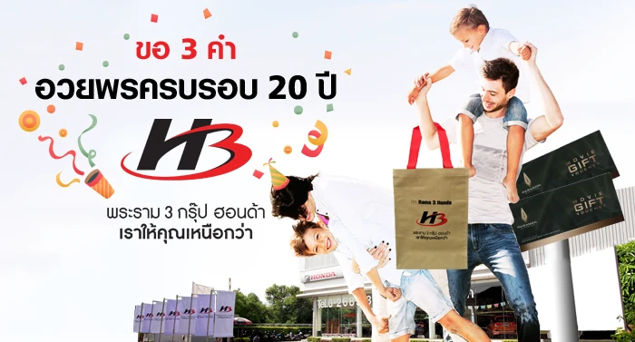 กิจกรรม "ขอ 3 คำ" อวยพรครบรอบ 20 ปี พระราม 3 กรุ๊ป ฮอนด้า ลุ้นดูหนังฟรี