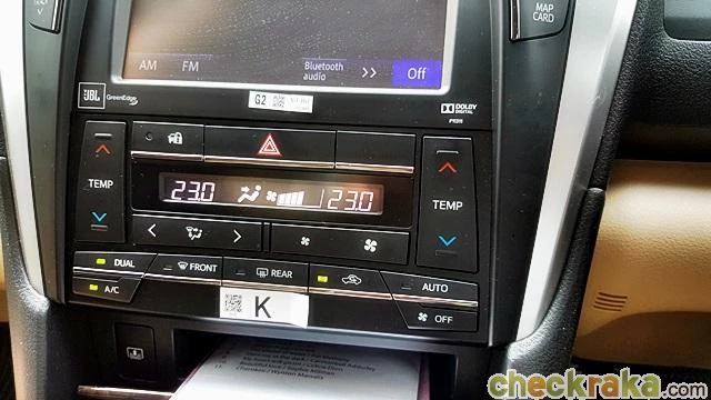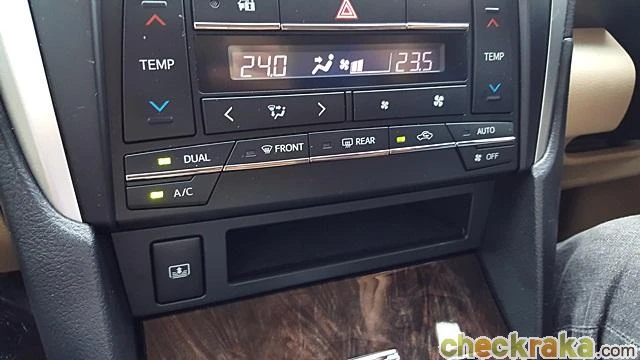 ตรงคอนโซลกลางออกแบบฐานเกียร์ใหม่เพิ่มถุงคลุมหนังแท้และดีไซน์ตัวบอกตำแหน่งเกียร์ได้สวยงามมากขึ้น ด้านข้างมีฝาปิดที่วางแก้วน้ำ ถัดมามาแท่นชาร์จโทรศัพท์แบบไร้สาย ระบบแอร์อัตโนมัติแยกปรับอุณหภูมิซ้าย-ขวา แต่น่าเสียดายที่ไม่มีระบบเบรกมือไฟฟ้าต้องใช้เท้าเหยียบแทน ซึ่งก็พอที่จะใช้งานได้ไม่ยาก ระบบเบรก (เท้า) มือแบบนี้มักอยู่ในรถรุ่นใหญ่ๆ ของญี่ปุ่น