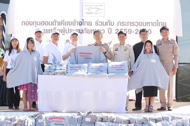 กองทุนฮอนด้าเคียงข้างไทยมีความยินดีที่ได้เป็นภาคีเครือข่ายความร่วมมือกับกระทรวงมหาดไทย และกรมป้องกันและบรรเทาสาธารณภัย น้อมนำแนวพระราชดำริของพระบาทสมเด็จพระปรมินทรมหาภูมิพลอดุลยเดชมาสร้างสรรค์กิจกรรมที่ช่วยสร้างประโยชน์สุขและบรรเทาความเดือดร้อนของประชาชนไทยมาอย่างต่อเนื่อง โดยเฉพาะอย่างยิ่งการสานต่อโครงการ "กองทุนฮอนด้า เคียงข้างไทย ร่วมกับกระทรวงมหาดไทย และกรมป้องกันและบรรเทาสาธารณภัย ช่วยเหลือผู้ประสบภัยหนาว ประจำปี 2559-2560" ซึ่งจัดอย่างต่อเนื่องมาเป็นปีที่ 4