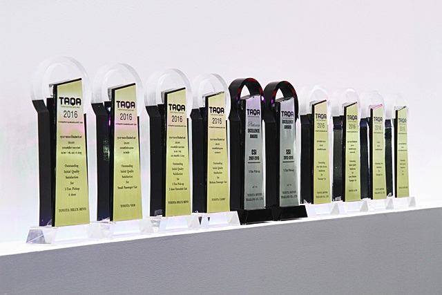 โตโยต้า ยึดมั่นด้วยการผลิตรถยนต์คุณภาพและบริการหลังการขายส่งผลให้ได้รับ 10 รางวัล "ธุรกิจยานยนต์ยอดนิยมแห่งปี 2559" หรือ TAQA: Thailand Automotive Quality Award 2016