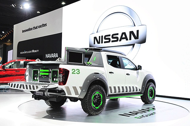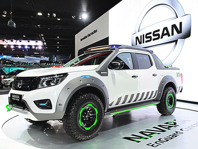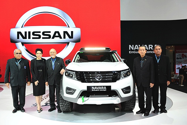ภายในบูธนิสสันจัดแสดงรถยนต์หลายหลายรุ่นโดยเฉพาะ นิสสัน นาวารา อองการ์ด คอนเซ็ปต์ (Nissan Navara EnGuard Concept) ต้นแบบรถยนต์กู้ภัยอัจฉริยะ ออกแบบมาให้เหมาะสำหรับพื้นที่อันตรายและสถานการณ์ต่างๆ ติดตั้งชุดแบตเตอรีกำลังสูงแบบพกพา เอกสิทธิ์ทางเทคโนโลยีจากรถยนต์ไฟฟ้าของนิสสัน แบบเดียวกับที่ใช้ในรถยนต์ที่ขับเคลื่อนด้วยพลังงานไฟฟ้าจากแบตเตอรี 100% อย่าง ลีฟ (LEAF) และ อี-เอ็นวี 200 (e-NV200)
