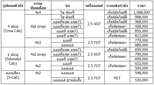 เชฟโรเลต โคโลราโด ไฮคันทรี รุ่นใหม่ราคาดังนี้
