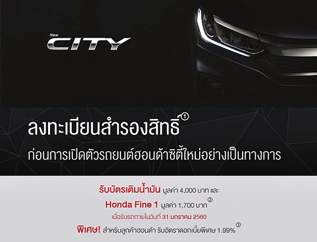 ติดตามความเคลื่อนไหวและบรรยากาศภายในงานเปิดตัวฮอนด้า ซิตี้ ใหม่ 2017 ได้ที่นี่ และสำหรับผู้ที่สนใจสามารถลงทะเบียนสำรองสิทธิ์ รับข้อเสนอพิเศษรถยนต์ฮอนด้าซิตี้ใหม่ได้ที่ลิงก์ด้านล่างนี้