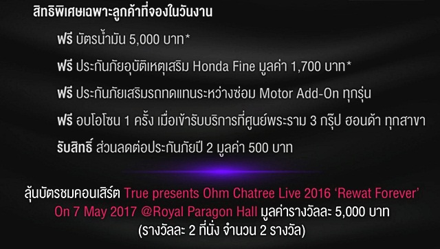 - ประกันอุบัติเหตุเสริม Honda Fine มูลค่า 1,700 บาท