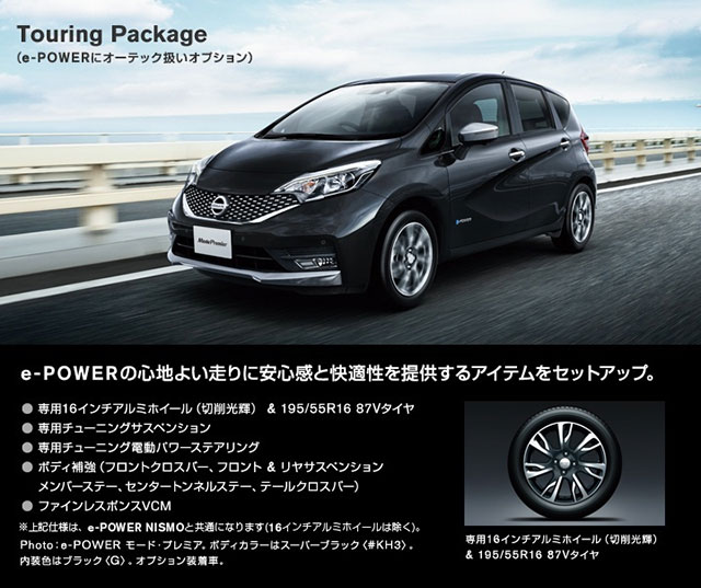 ในส่วนของ Nissan Note e-Power Mode Premier ที่มาพร้อมชุดแต่งจาก Autech ได้รับการแต่งให้ดูสปอร์ตหรูหรา ใช้กระจังหน้าลายตาข่าย ขอบกันชนหน้า-หลัง สีเงิน คู่กับไฟ LED Daytime Running Light แบบใหม่บริเวณกันชน ไฟท้ายใหม่และกันชนท้ายใหม่ และล้อแม็กลายใหม่ขนาด 15 นิ้ว ส่วนภายในห้องโดยสารตกแต่งให้ดูหรูหรา แบบทูโทน มาพร้อมพวงมาลัยทรงใหม่ ตกแต่งภายในสีเงิน ลวดลายเบาะใหม่ พร้อมที่วางแขนด้านคนขับ และเทคโนโลยีใหม่ๆ อาทิเช่น กล้องอัจฉริยะมองภาพรอบทิศทาง Around View Monitor ระบบเตือนก่อนการชนด้านหน้าอัจฉริยะ ระบบช่วยเบรกฉุกเฉินอัจฉริยะ และระบบเตือนเมื่อรถออกนอกช่องทาง เป็นต้น