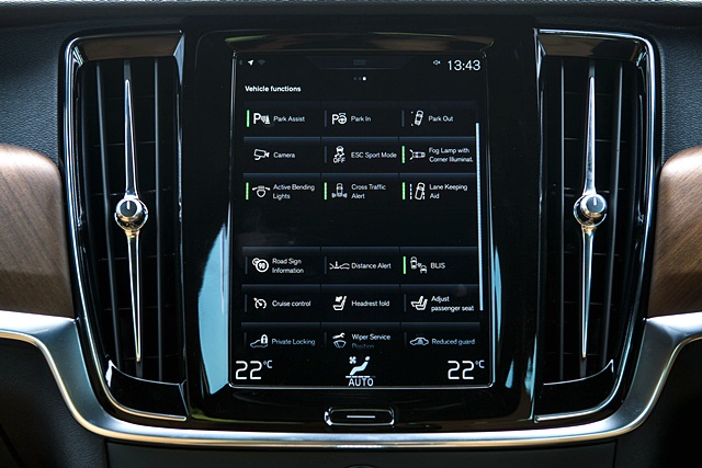 ส่วนระบบเอนเตอร์เทนภายในวอลโว่ใหม่ทุกรุ่น ติดตั้งอุปกรณ์เชื่อมสัญญาณสั่งการและสื่อสารผ่านดาวเทียม เรียกชื่อเฉพาะว่า Sensus Connect ระบบแรกของโลกที่เชื่อมต่อกับ Apple CarPlay และอุปกรณ์สื่อสารเคลื่อนที่ในระบบ iOS เช่น iPhone ได้โดยซอฟต์แวร์ที่มากับตัวรถ บังคับควบคุมที่ปุ่มสัมผัสบนแกนพวงมาลัยรถ และ การสั่งการด้วยเสียง Voice Control ของผู้ขับขี่ แสดงข้อมูลบนหน้าจอแสดงผลขนาด 9.0 นิ้ว ทันสมัย สะดวกสบาย และเสริมขับขี่ปลอดภัย ไม่เพียงเท่านั้น Volvo S90 ใหม่ยังติดตั้งเครื่องเสียงติดรถยนต์ Premium Sound by Bowers & Wilkins สเตอริโอรอบทิศทางที่ให้คุณภาพเสียงคมชัดเป็นมิติฟังนุ่มหูที่สุดของโลก ระบบเสียงชั้นนำชุดนี้มาพร้อมกับแอมพลิฟายเออร์ 1,400 วัตต์ 12-แชนเนล คลาส-ดี และลำโพง 19 ตัวรอบห้องโดยสาร สามารถเลือกฟังได้ 3 โหมด ได้แก่ Studio, Individual Stage, และ Gothenburg Concert Hall ที่สร้างสรรค์ประสบการณ์การได้ยินเหมือนนั่งอยู่ใน Gothenburg Concert Hall