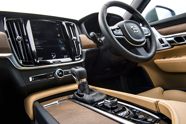การออกแบบตกแต่งภายในได้นำสไตล์ของ Volvo XC90 มายกระดับขึ้นอีกขั้น ไม่ว่าจะเป็นแผงหน้าปัดที่ออกแบบใหม่ที่แสดงผลกราฟิกที่มีสีสันขนาดใหญ่ 12.3 นิ้ว ภายในรถตกแต่งด้วยลายไม้ธรรมชาติสไตล์สแกนดิเนเวียน เบาะหนังแท้ Nappa นุ่มเนียนพิเศษต่อการสัมผัส ให้ความรู้สึกผ่อนคลายและนั่งได้สบายทั้งผู้ขับและผู้นั่งตลอดการเดินทาง หน้าจอสัมผัสขนาด 9.0 นิ้วเหนือคอนโซลกลาง พิถีพิถันแม้กระทั่งปุ่มปรับทิศทางของช่องลมแอร์แนวตั้งที่ขัดเกลาเคลือบด้วยโลหะรูปทรงเพชร ระบบกรองอากาศ Clean Zone ที่ดักละอองฝุ่น เกสรดอกไม้ อันเป็นสาเหตุของโรคภูมิแพ้ และสูดสัมผัสได้ถึงบรรยากาศในรถที่บริสุทธิ์สะอาดเหมือนที่สวีเดน แม้จะเป็นรถยนต์นั่งซีดาน 4 ประตูคันใหญ่ แต่ก็ไม่ลืมคุณสมบัติด้านอรรถประโยชน์ เช่น ช่องเก็บของรอบห้องโดยสาร ที่คอนโซลกลาง และที่วางแขนกลางเบาะหลัง พนักพิงเบาะหลังแยกพับราบได้ 60/40 เพิ่มเนื้อที่บรรทุกสัมภาระ ขณะเดียวกันก็สามารถนั่งโดยสารฝั่งหนึ่งใดของเบาะหลัง