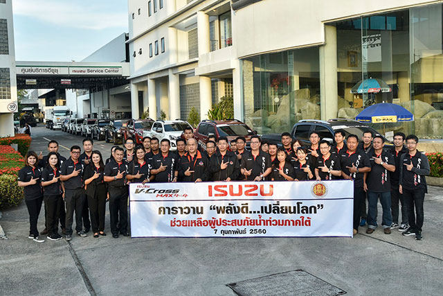 คุณปนัดดา เจณณวาสิน กรรมการรองผู้จัดการ บริษัท ตรีเพชรอีซูซุเซลส์ จำกัด และรองประธานกรรมการมูลนิธิกลุ่มอีซูซุ กล่าวว่า "เราห่วงใยผู้ประสบอุทกภัยเป็นอย่างมาก ตั้งแต่น้ำท่วมที่ภาคใต้ เราได้ส่งทีมช่างอีซูซุผู้เชี่ยวชาญลงพื้นที่เพื่อช่วยเหลือผู้ประสบภัย บริจาคเงินและสิ่งของผ่านสื่อมวลชนและหน่วยงานราชการหลายแห่ง อีกทั้งผู้จำหน่ายอีซูซุยังให้ความช่วยเหลือผู้ประสบภัยในพื้นที่ต่อเนื่อง และต่อลูกค้าผู้ใช้รถอีซูซุอีกด้วย นอกจากนี้หลังจากน้ำลด เรายังได้จัดขบวนคาราวาน "อีซูซุ วี-ครอส พลังดี...เปลี่ยนโลก" นำคณะผู้บริหาร พนักงาน และผู้จำหน่ายอีซูซุลงพื้นที่ร่วมบริจาคเงิน สิ่งของจำเป็นต่างๆ รวมถึงวัสดุอุปกรณ์เพื่อร่วมฟื้นฟูพื้นที่ที่ได้รับผลกระทบรุนแรงจากอุทกภัยครั้งนี้และยังคงรอคอยความช่วยเหลือที่อำเภอชะอวด จังหวัดนครศรีธรรมราช และอำเภอกาญจนดิษฐ์ จังหวัดสุราษฎร์ธานี"