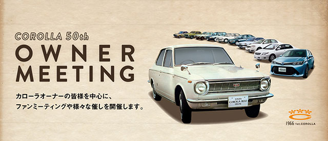 เพื่อเป็นการรำลึกถึงการครบรอบ 50 ปี ของ Toyota Corolla ทางโตโยต้าจึงได้จัดงาน "Corolla 50th Owner Meeting" ขอบคุณผู้ใช้ Corolla มานานถึง 50 ปี โดยพิธีเปิดงานเริ่มเมื่อวันที่ 6 มีนาคม 2560 ณ โรงงานผลิตรถยนต์ Takaoka Plant ที่ Toyota City จังหวัดไอจิ ประเทศญี่ปุ่น ซึ่งภายในงานได้เชิญทีมงานผู้ออกแบบ Corolla รุ่นต่างๆ ที่ยังมีชีวิตอยู่ มาเล่าถึงประสบการณ์และความรู้สึกในการออกแบบ Corolla รุ่นนั้นๆ พร้อมทั้งเปิดขบวน Caravan Parade ที่เตรียมขับไปตามจังหวัดต่างๆ ทั่วประเทศญี่ปุ่นอีกด้วย