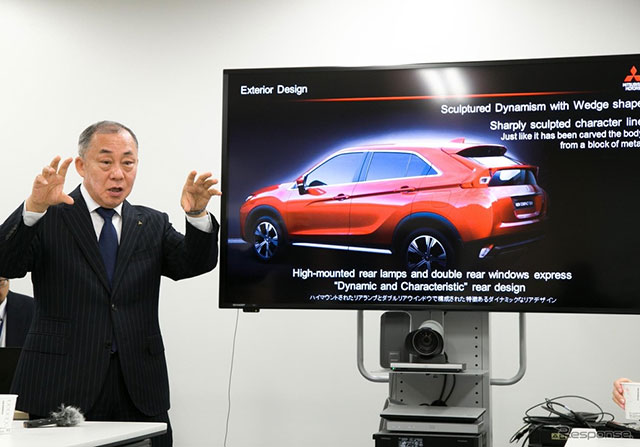 Tsunehiro Kunimoto หัวหน้าทีมออกแบบของ Mitsubishi กำลังให้ข้อมูลกับสื่อมวลชน