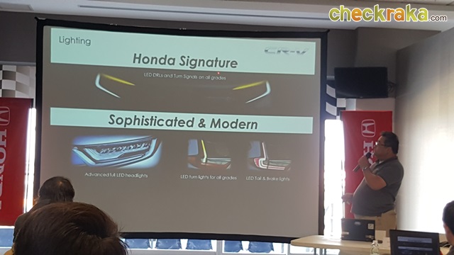 ภายนอก Honda CR-V ใหม่ ปรับโฉมทั้งคัน ไฟหน้าแบบ LED กระจังหน้ารูปทรงใหม่เข้ากับกันชน พร้อมไฟตัดหมอก LED เส้นสายด้านข้างมีส่วนคล้ายรุ่นก่อนหน้า ติดตั้งสเกิร์ตรอบคัน ไฟท้าย LED ทรงรูปตัว "L" แยกเป็น 2 ชิ้น ที่เสาหลังและฝาท้ายดูหรูหราขึ้น ท่อไอเสียแบบคู่ ตกแตงคิ้วโครเมียมรอบคัน และล้อแม็กขนาด 18 นิ้ว