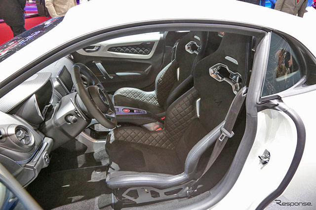 ห้องโดยสารภายในแบบสปอร์ตด้วยพวงมาลัยสามก้านขอบล่างตัดตรง มีหน้าจอทัชสกรีนกลางคอนโซล เบาะที่นั่งแบบ Bucker Seat ตัดเย็บลายตะแกรง