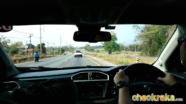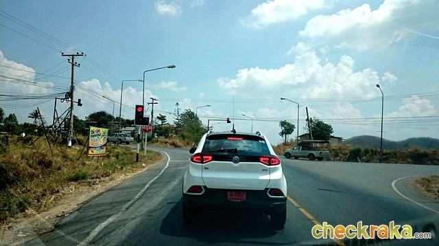 สำหรับเส้นทางการทดสอบ MG GS ขุมพลังเทอร์โบ 1.5 ลิตร วันแรกกลุ่มของทีมงานเช็คราคา.คอม หลังจากบินมาลงที่จังหวัดอุดรธานี ในช่วงบ่ายก็เริ่มต้นขับจากโชว์รูม MG อุดรธานีไปขอนแก่น กำหนดให้เป็นการขับประหยัดน้ำมัน มีรถ MG GS 1.5 Turbo ทั้งหมด 8 คัน แบ่งนั่งคันละ 2-3 คน โดยให้แต่ละคันเลือกตัวแทนขับ ผู้เขียนนั่งรถเบอร์ 6 และเป็นคนขับเอง โดยเพื่อนสื่อมวลชนที่นั่งไปด้วย ช่วยกันคำนวณระยะทาง เวลา และความเร็วเฉลี่ยที่ต้องใช้ เพราะด้วยระยะทาง และเวลา 90 นาที ต้องวิ่งผ่านถนนระหว่างจังหวัดและตัวเมืองให้ทันภายในเวลาที่กำหนด จึงต้องพยายามใช้ความเร็วเฉลี่ยให้ได้ราว 90 กม./ชม. จุดสิ้นสุดการทดสอบเป็นปั๊มน้ำมัน ปตท. ภายในตัวเมืองขอนแก่น รถ MG GS 1.5 Turbo ของผู้เขียนเข้ามาเป็นลำดับแรกก่อนหมดเวลาที่กำหนดประมาณ 4 นาที และคันที่สองเข้ามาก่อนหมดเวลา 30 วินาที เมื่อเปรียบเทียบปริมาณน้ำมันที่ต้องเติมกลับพบว่าคันที่สองใช้น้ำมันน้อยกว่า จึงเป็นคันที่ประหยัดที่สุดภายใต้เงื่อนไขที่กำหนด แต่เมื่อนำปริมาณน้ำมันที่เติมกลับคืนให้รถทั้งหมดมาเฉลี่ยอัตราสิ้นเปลืองพบว่าอยู่ที่ 18.00 กม./ล.