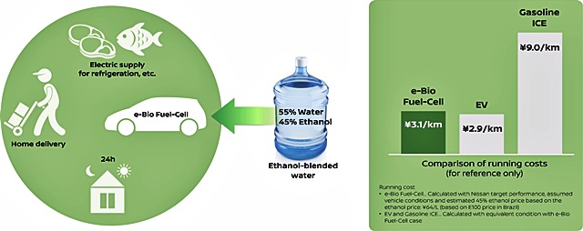 Nissan NV200 e-Bio Fuel-Cell ต้นแบบรถยนต์ไฟฟ้าจากเซลล์เชื้อเพลิงแบบออกไซด์แข็ง (SOFC-Solid Oxide Fuel-Cell) เติมเอทานอลชีวภาพ แบบแรกของโลกที่สามารถขับเคลื่อนด้วยพลังงานจากเชื้อเพลิงเอทานอลชีวภาพ (Bio-Ethanol Electric Power)