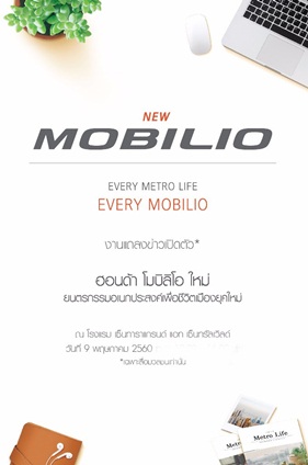 Honda Mobilio 2017 ได้เวลา Minor change แล้ว วันที่ 9 พฤษภาคมนี้ เผยโฉมจริงพร้อมกันทั่วประเทศ ฮอนด้า โมบิลิโอ นับเป็นรถยนต์อเนกประสงค์ 7 ที่นั่ง รุ่นแรกๆ ที่ฮอนด้า ได้ทำตลาดในประเทศไทย และได้รับความนิยมจนยอดขายถล่มทลาย และตอนนี้ก็ได้เวลาปรับโฉม อัพเดทหน้าตาและอุปกรณ์ใหม่ให้ทันสมัยยิ่งขึ้น