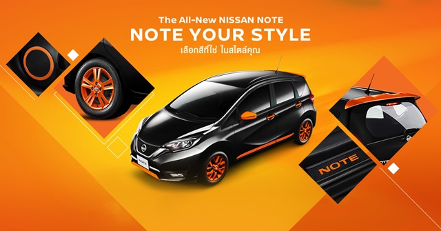 - ผู้สนใจสามารถทดลองตกแต่งในโปรแกรมเสมือนจริงผ่านเว็บไซต์ "NISSAN NOTE PERSONALIZATION**" ซึ่งเมื่อทดลองตกแต่งแล้ว ยังสามารถแชร์ให้เพื่อนๆ ได้ชมสไตล์การตกแต่งของแต่ละคนผ่านช่องทางของโซเชียลมีเดียอีกด้วย