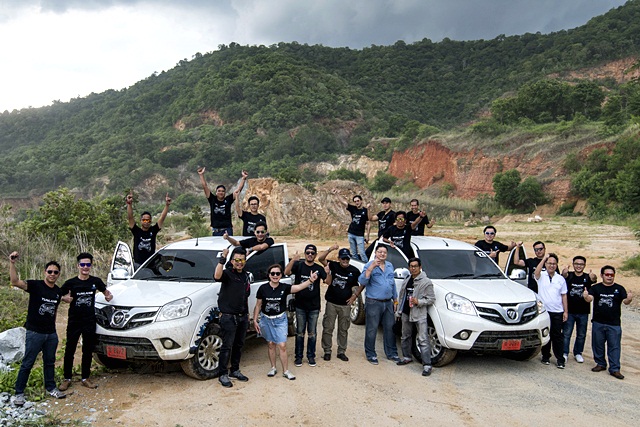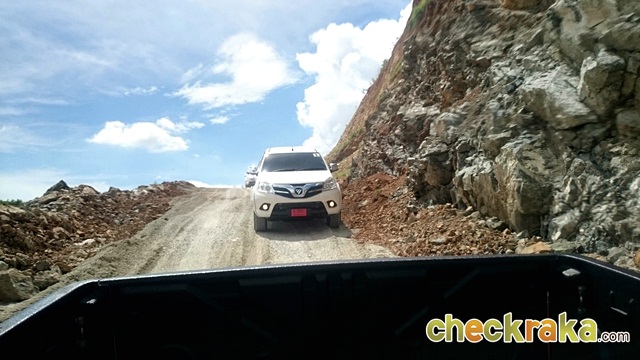 จากนั้นขบวนโฟตอนไปต่อที่โรงโม่หิน เทศบาลตำบลเหมือง เพื่อทดสอบการขับบนทางออฟโรด พิสูจน์สมรรถนะความแกร่งและระบบขับเคลื่อน 4 ล้อ โดยทางส่วนใหญ่เป็นทางดินผสมหิน ทางผู้จัดได้มีการจัดเส้นทางเฉพาะกิจ เพื่อให้ได้ลองขับกันครบทั้งลุยน้ำ โคลน หิน ขึ้น-ลงเนิน โดยผู้เขียนได้ปรับโหมดการขับเคลื่อนไปที่ 4H แล้วลองลุยไปตามเส้นทาง 2-3 รอบ พอสรุปสั้นๆ ได้ว่า ทูนแลนด์ สามารถรับมือกับเส้นทางออฟโรดแบบนี้ได้สบาย พร้อมตอบสนองการควบคุมได้อย่างน่าพอใจ หลังเสร็จสิ้นการทดสอบ การเดินทางกลับเป็นแบบฟรีรันอีกครั้ง ในช่วงนี้ผู้เขียนเริ่มสังเกตว่าช่วงรอบเดินเบา เสียงการทำงานของพัดลมหม้อน้ำค่อนข้างดังกว่าปกติ จึงแจ้งทีมงานโฟตอนเพื่อดำเนินแก้ไขและหาสาเหตุต่อไป สำหรับรถกระบะแบรนด์ใหม่อย่างโฟตอน ผู้เขียนคิดว่าการออกแบบทั้งภายนอกและภายในรวมถึงระบบต่างๆ อยู่ในเกณฑ์ที่ดี เหลือเพียงแค่ความแน่นอนของระบบเครื่องยนต์กลไกต่างๆ ที่ต้องเพิ่มเสถียรภาพให้ผู้ใช้มั่นใจได้ในระยะยาว