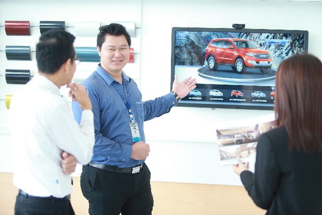 ลูกค้าของฟอร์ดสามารถหาข้อมูลรถรุ่นที่ต้องการ คำนวณราคาค่างวด และรับข้อมูลโปรโมชั่น หรือแคมเปญต่างๆ ได้ด้วยตนเองแบบอินเตอร์แอคทีฟจากจอทัชสกรีนอัจฉริยะ Experiential Wall System