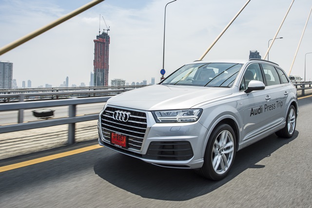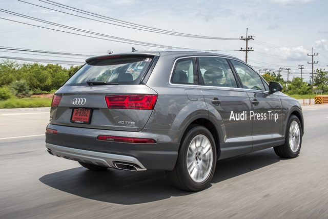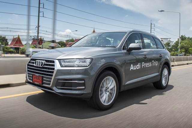 SUV คันใหญ่ของ Audi Q Model โดดเด่นด้วยระบบเกียร์ Tiptronic 8 จังหวะ และระบบป้องกัน Pre sense แบบพื้นฐาน (Audi pre sense basic) ภายนอกสะดุดตาด้วยไฟหน้าและไฟท้ายแบบ LED พร้อมไฟเลี้ยวด้านท้ายแบบ Dynamic ภายในพิเศษด้วยไฟเรืองแสงในห้องโดยสาร (Ambient lighting) ที่เลือกได้ถึง 30 สี สุนทรีย์ด้วยระบบเครื่องเสียง ระดับพรีเมียม Bose sound system พร้อมระบบเสียง 3 มิติ Audi Q7 จาก Audi Thailand มีให้เลือกถึง 2 รุ่น ได้แก่