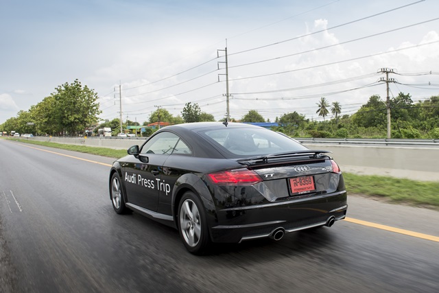 สปอร์ตคูเป้ที่ใช้งานได้สะดวกสบายไม่แพ้รถซีดาน แต่ให้อารมณ์แบบรถสปอร์ตขนาดแท้ ความรู้สึกท่านั่งคล้ายซูเปอร์คาร์ เบาะระดับต่ำแบบบักเก็ตซีทหุ้มหนัง Alcantara หน้าปัดยกชุดมาจากตัวแรง "TT" แบบจอสี TFT แสดงผลในรูปแบบกราฟิก "Audi virtual cockpit" สวยงามพร้อมฟังก์ชั่นเพียบ พลังแรงด้วยเครื่องยนต์เบนซิน 4 สูบ TFSI หัวฉีดตรง 2.0 ลิตร กำลังสูงสุด 252 แรงม้า! แรงบิด 370 นิวตัน-เมตร เกียร์ S Triptronic 7 จังหวะ พร้อมระบบขับเคลื่อน 4 ล้อ Quattro ช่วงล่างปรับโหมดได้ 5 รูปแบบ คือ Efficiency, Comfort, Auto, Dynamic และ Individual อัตราเร่งเร้าใจสุดๆ 0-100 กม./ชม. ใน 5.8 วินาที เสริมด้วยช่วงล่างที่หนึบแน่นมั่นใจ