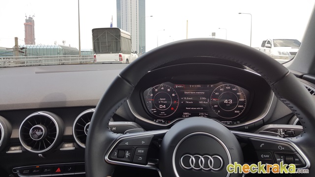 สปอร์ตคูเป้ที่ใช้งานได้สะดวกสบายไม่แพ้รถซีดาน แต่ให้อารมณ์แบบรถสปอร์ตขนาดแท้ ความรู้สึกท่านั่งคล้ายซูเปอร์คาร์ เบาะระดับต่ำแบบบักเก็ตซีทหุ้มหนัง Alcantara หน้าปัดยกชุดมาจากตัวแรง "TT" แบบจอสี TFT แสดงผลในรูปแบบกราฟิก "Audi virtual cockpit" สวยงามพร้อมฟังก์ชั่นเพียบ พลังแรงด้วยเครื่องยนต์เบนซิน 4 สูบ TFSI หัวฉีดตรง 2.0 ลิตร กำลังสูงสุด 252 แรงม้า! แรงบิด 370 นิวตัน-เมตร เกียร์ S Triptronic 7 จังหวะ พร้อมระบบขับเคลื่อน 4 ล้อ Quattro ช่วงล่างปรับโหมดได้ 5 รูปแบบ คือ Efficiency, Comfort, Auto, Dynamic และ Individual อัตราเร่งเร้าใจสุดๆ 0-100 กม./ชม. ใน 5.8 วินาที เสริมด้วยช่วงล่างที่หนึบแน่นมั่นใจ