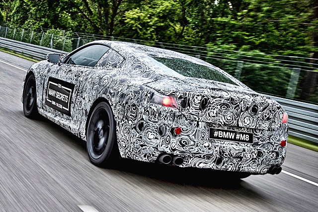 BMW M8 นี้เมื่อออกสู่ตลาดในปี 2018 แล้ว จะเป็นคู่แข่งเทียบกับ Bentley Continental GT และ Porsche Panamera ด้วยพลังจากเครื่องยนต์เบนซิน วี8 สูบ 4.4 ลิตร Twin-turbocharged รุ่นเดียวกับที่อยู่ใน M5 ใหม่ กำลัง 600 แรงม้า เกียร์ 8 จังหวะ ขับเคลื่อน 4 ล้อ ภายใต้สติกเกอร์นี้เป็นตัวถังที่ออกแบบตามหลักพลศาสตร์ นอกจากนี้ BMW M8 ยังมีรุ่นที่พร้อมลงรายการแข่งขัน Le Mans 24 Hours โดยใช้ชื่อเต็มเท่ๆ ว่า "BMW M8 GTE"