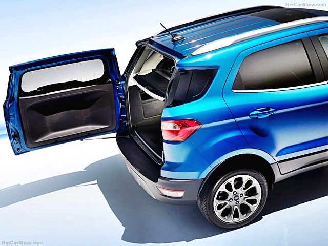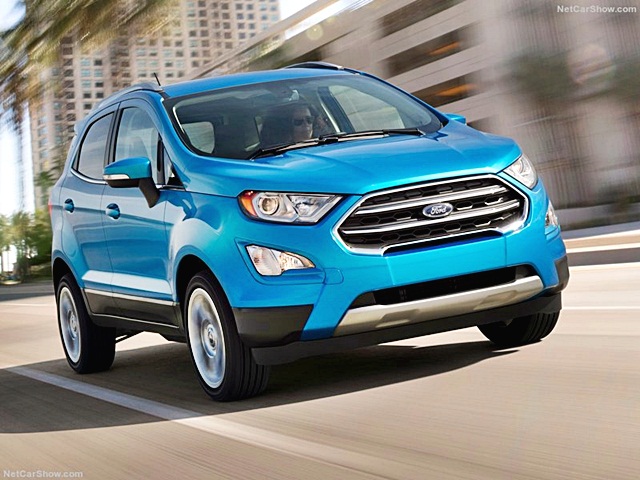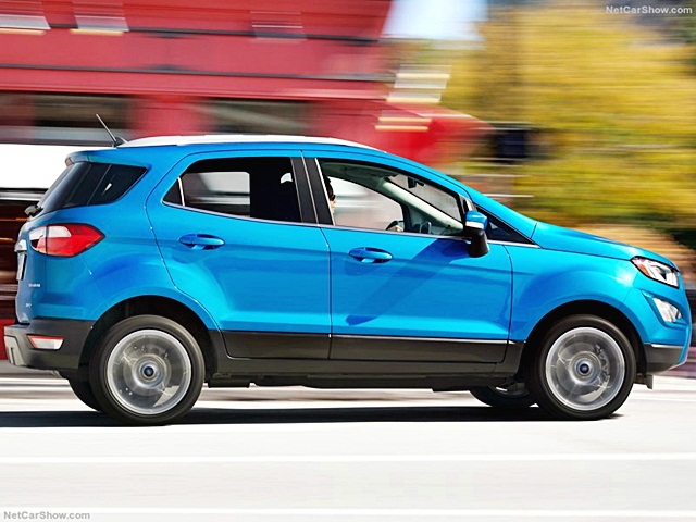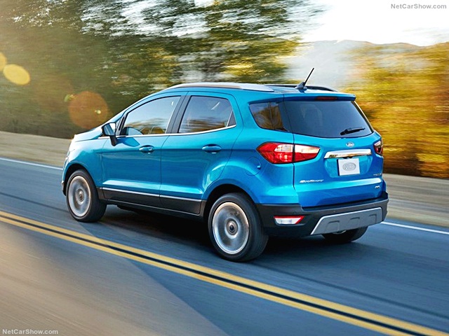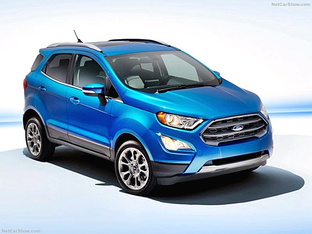 Ford EcoSport 2018 รถยนต์อเนกประสงค์ SUV ขนาดย่อมคล่องตัวปรับโฉมเล็กน้อยในแบบ Facelift ภายนอกไฟหน้าโปรเจคเตอร์ กระจังหน้าห้าเหลี่ยม กันชนหน้าทรงใหม่ พร้อมไฟตัดหมอก ไฟท้ายทรงเดิมตัดยางอะไหล่ออก