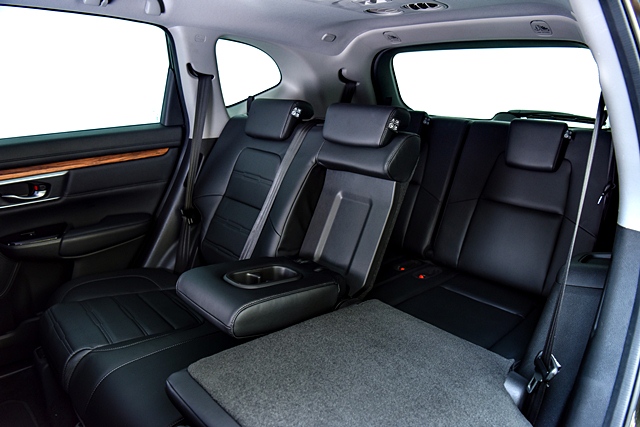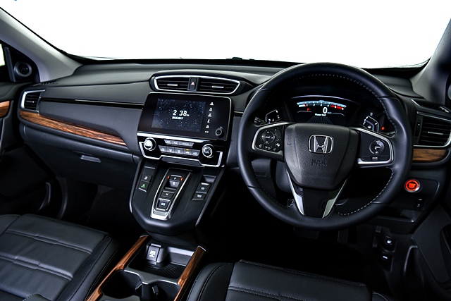 Honda CR-V ใหม่ มีห้องโดยสารดีไซน์กว้างขวาง สะดวกสบาย ครั้งแรกที่มีเบาะโดยสาร 3 แถว แบบ 7 ที่นั่ง เพื่อตอบสนองความต้องการของลูกค้ามากขึ้น เบาะหนังเป็นสีดำ แผงคอนโซลด้านหน้าขนาดใหญ่ที่ตกแต่งเส้นสายด้วยลายไม้และวัสดุสี Piano Black ครบครันด้วยอุปกรณ์อำนวยความสะดวกระดับพรีเมียม เช่น ระบบเกียร์ไฟฟ้าที่ควบคุมการเปลี่ยนเกียร์ด้วยสวิตช์ (Shift by Wire) มอบความสะดวกสบายในการเปลี่ยนเกียร์ขณะขับ (เฉพาะรุ่นดีเซล) เบาะนั่งด้านคนขับปรับไฟฟ้า 8 ทิศทาง พร้อมปุ่มปรับดันหลังไฟฟ้า 4 ทิศทาง ระบบปรับอากาศอัตโนมัติแบบ i-Dual Zone ระบบปรับอากาศสำหรับผู้โดยสารแถว 2 และ 3 อีกทั้งช่องเชื่อมต่อ USB ช่องเชื่อมต่อ HDMI และช่องจ่ายไฟสำรอง เพื่อความสะดวกสบายในการใช้งานของผู้ขับขี่และผู้โดยสารทุกตำแหน่ง บางรายการเป็นอุปกรณ์ติดตั้งเฉพาะรุ่น