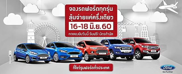 โปรโมชั่น Ford จองรถฟอร์ดทุกรุ่น ลุ้นจ่ายแค่ครึ่งเดียว 16 - 18 มิ.ย. 60 เท่านั้น!