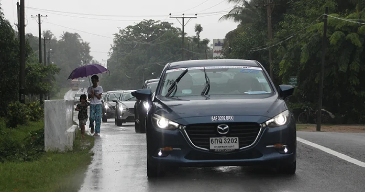 ฝนกลับมาทักทายเราอีกครั้งก่อนเข้าย่างกุ้ง แต่ก็ไม่ได้สร้างอุปสรรคให้กับมาสด้าที่เพียบพร้อมด้วยระบบช่วยเหลืออันทันสมัยแต่อย่างใด